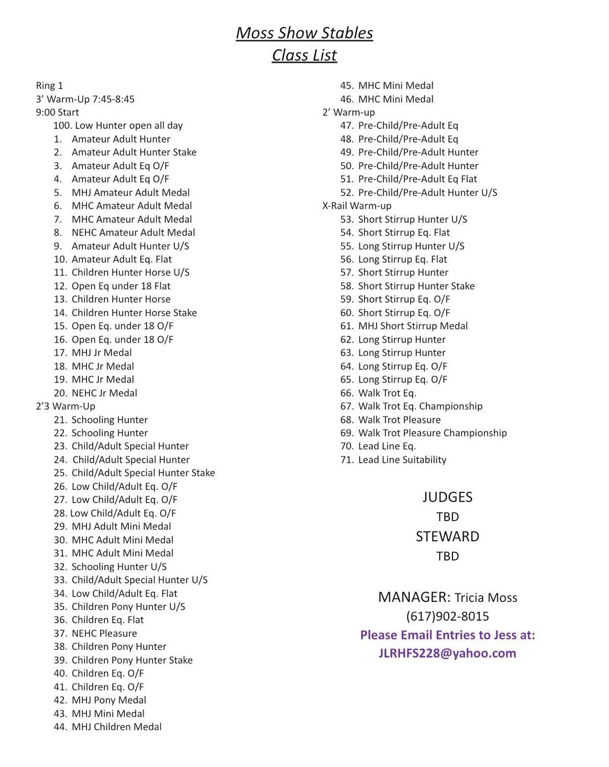 | October 3 | Cavallo Equestrian Center | Class List |